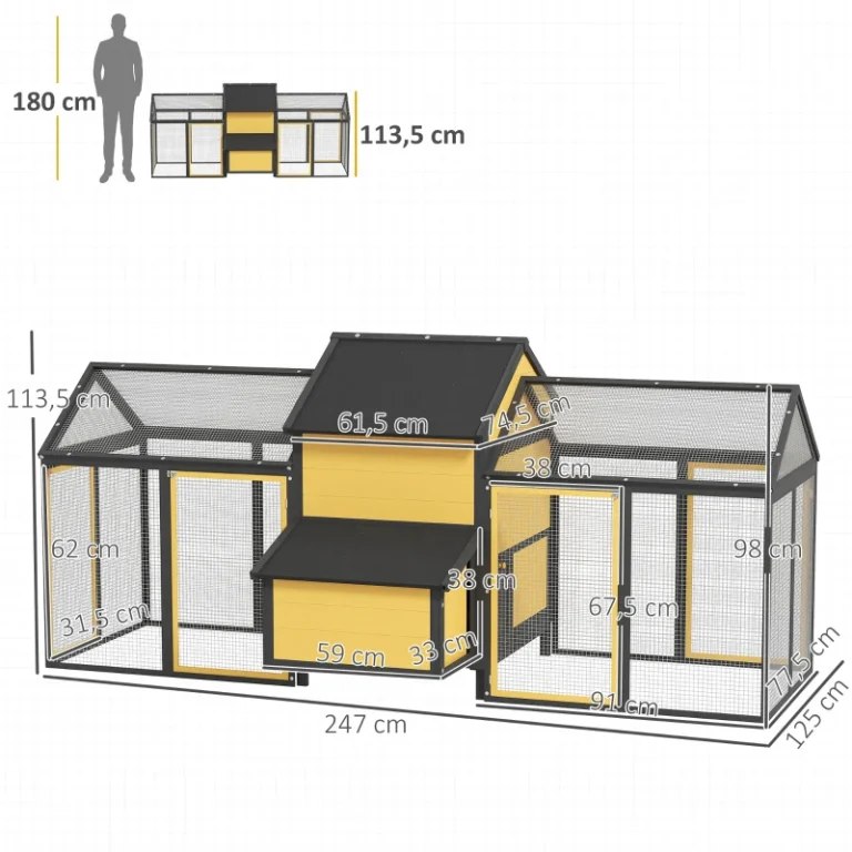 PawHut Кокошарник за малки животни, 2 външни заграждения