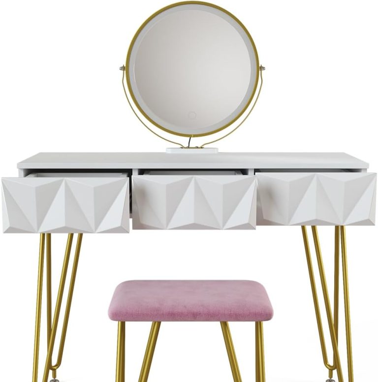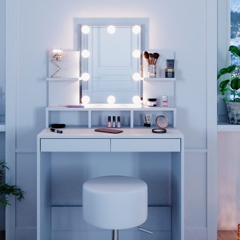 Тоалетка Vicco Ruby, с огледало, с LED осветление и табуретка