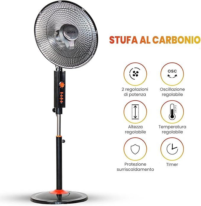 - Електрическа печка с възможност за накланяне и автоматично осцилиране на 180 градуса, оборудвана с дръжка за носене, таймер до 60 минути и защита от накланяне