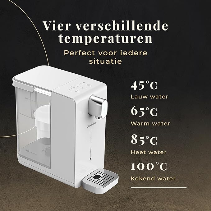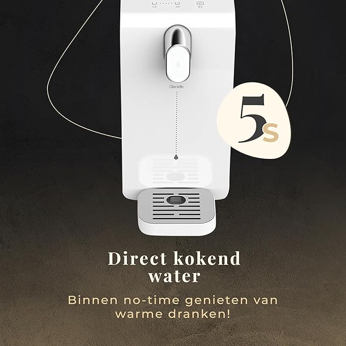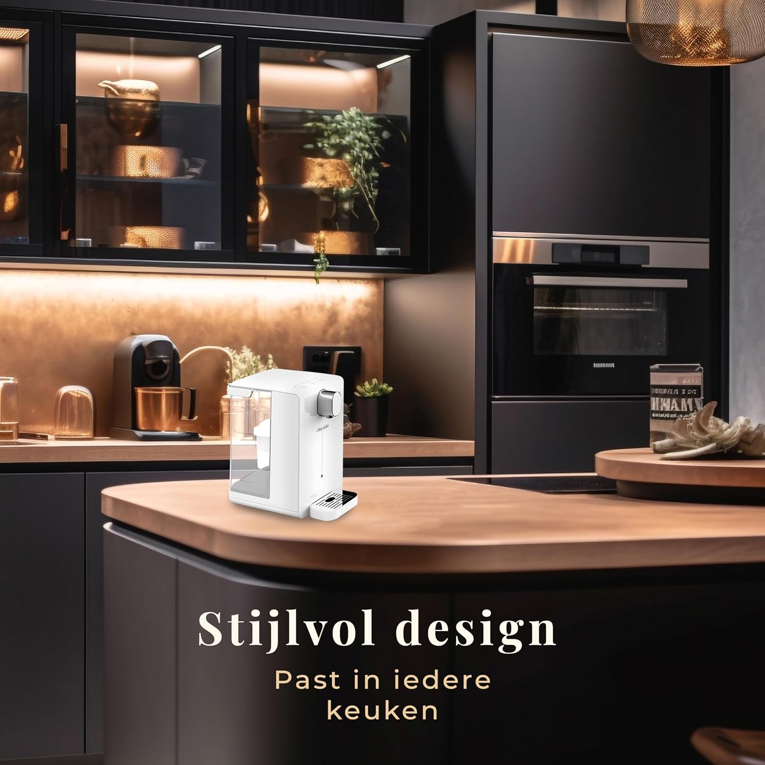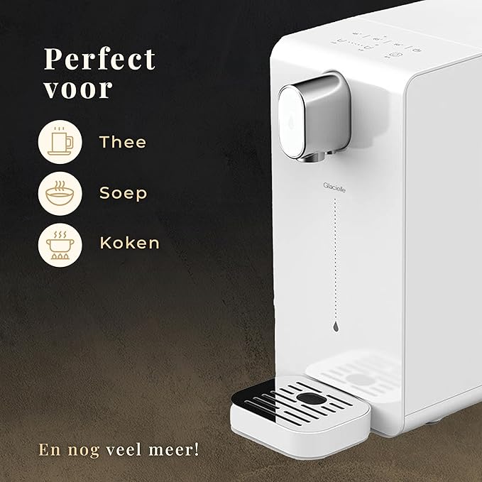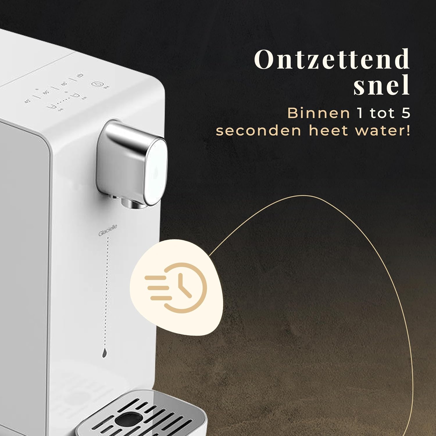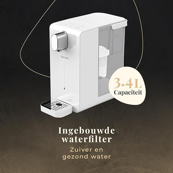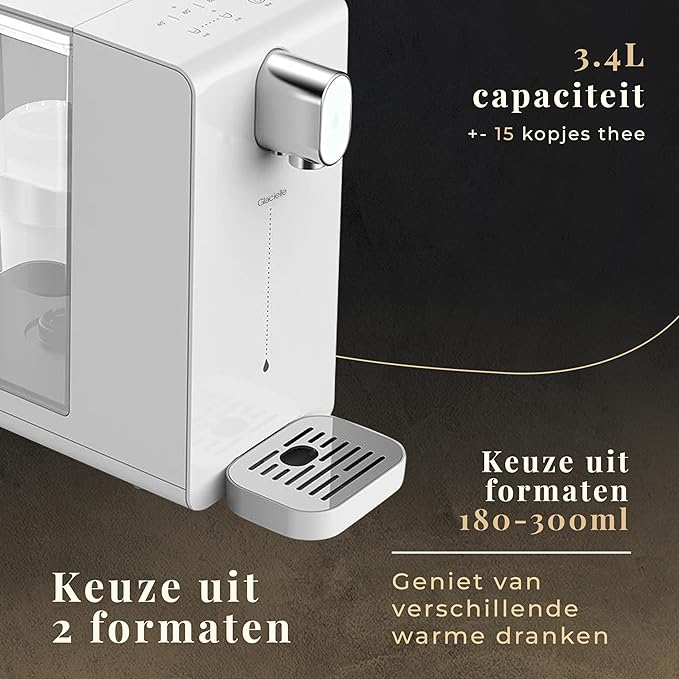 Диспенсър за топла вода Glacielle – Луксозна кана за бързо приготвяне – 3.4 л – Включва филтър за вода – Кран за топла вода – Бял