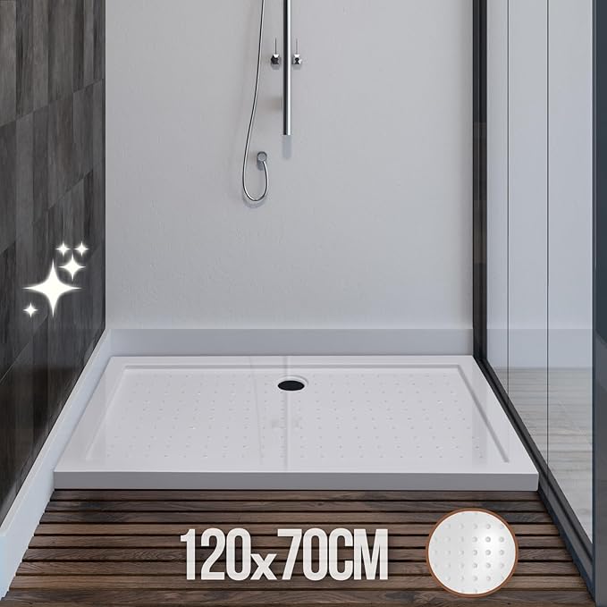 Душ корито Aquamarin® – 120 x 70 см, Супер плоско, ниско, неплъзгащо се, правоъгълно, максимално натоварване 250 кг, акрил, бяло