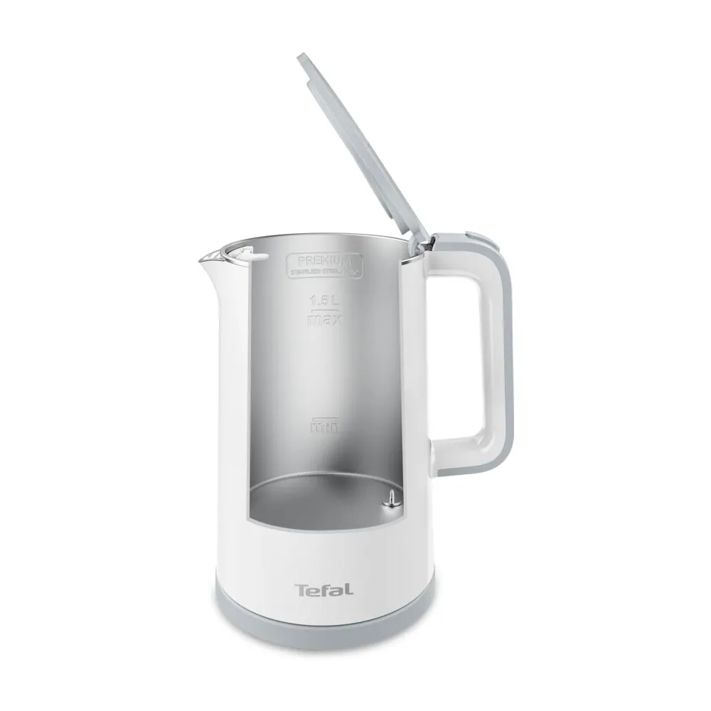 Електрическа кана Tefal Sense KO693110, 1800W, Капацитет 1.5 л, Цифров екран, 5 температурни стъпки, Въртяща се основа, Интериор от Inox, Бял