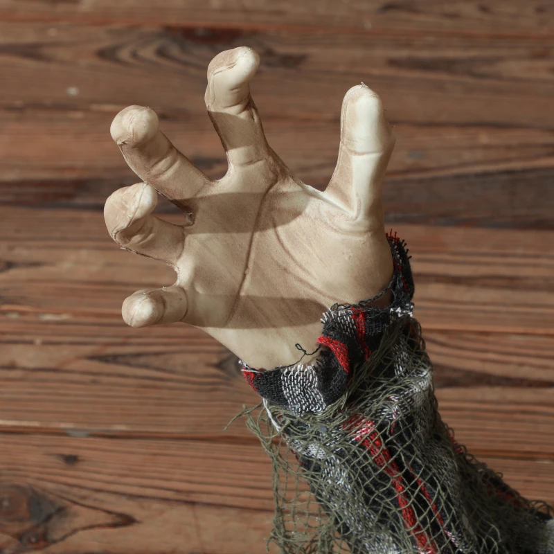 - Зловещ дизайн: Изживейте истински ужас с анимиран скелет, който изскача от земята и има огъващи се ръце – перфектна декорация за Хелоуин, за да създадете плашеща атмосфера във вашата обитавана от духове къща.