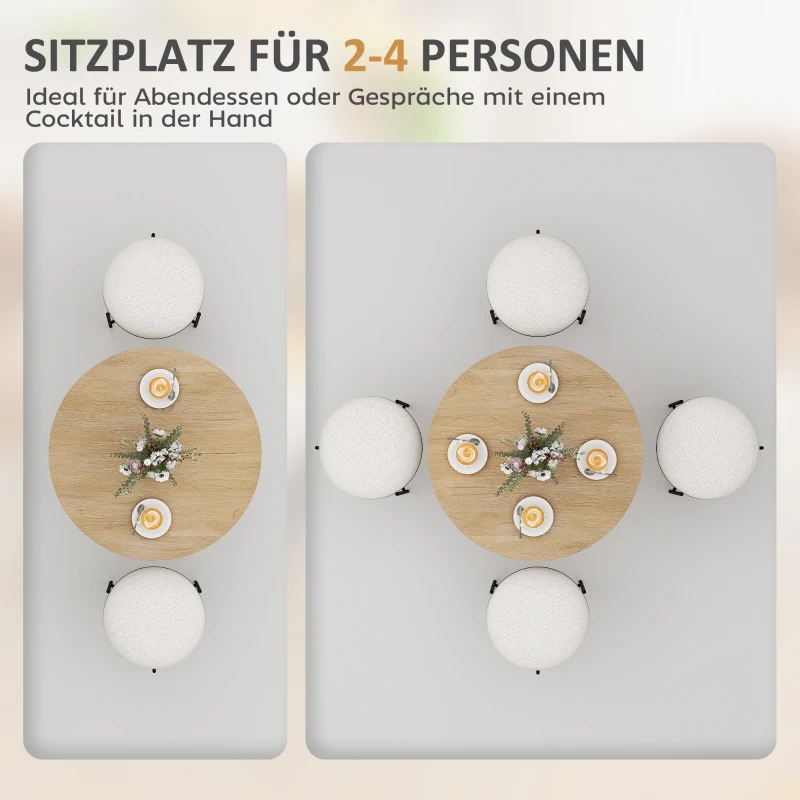 - Перфектен размер за двама души: Кръглата кухненска маса с диаметър 80 см удобно побира двама души – идеална за семейни вечери, непринуден брънч или забавни игрови вечери.