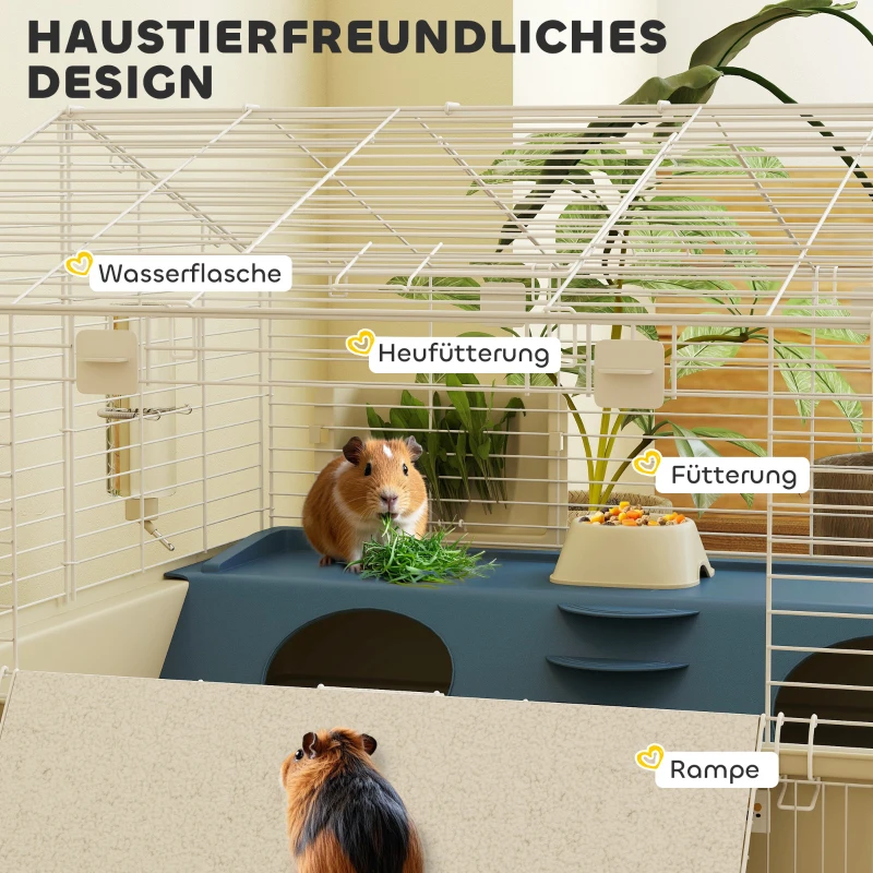 - ✔ Двуслойният дизайн на клетката с голямо заграждение увеличава максимално пространството за морски свинчета и таралежи