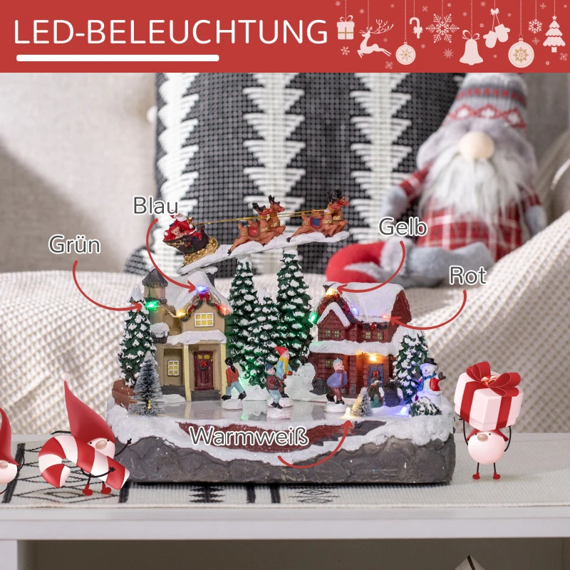 Коледна украса HOMCOM, Коледно селце, 13 цветни светодиода, движещи се кънкьори на лед, 30 x 24,5 x 23 см