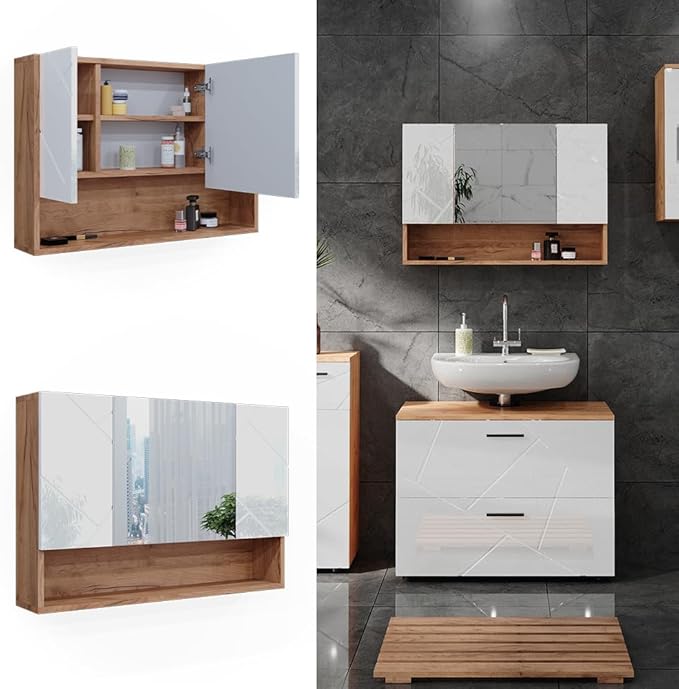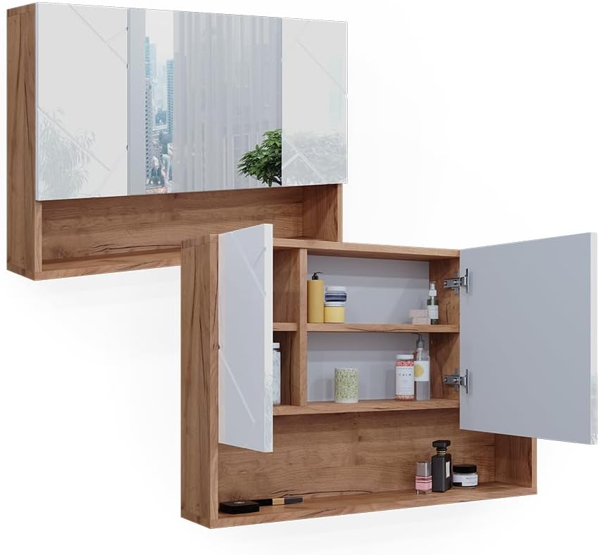 Огледален шкаф Vicco irma 80 sm, стенно огледало, с 3 врати