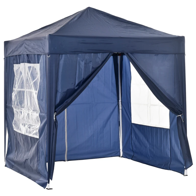 Outsunny Разгъваща се беседка, бирена палатка, 4 подвижни странични стени, 2 прозореца, метална рамка, 2 x 2 м, синя