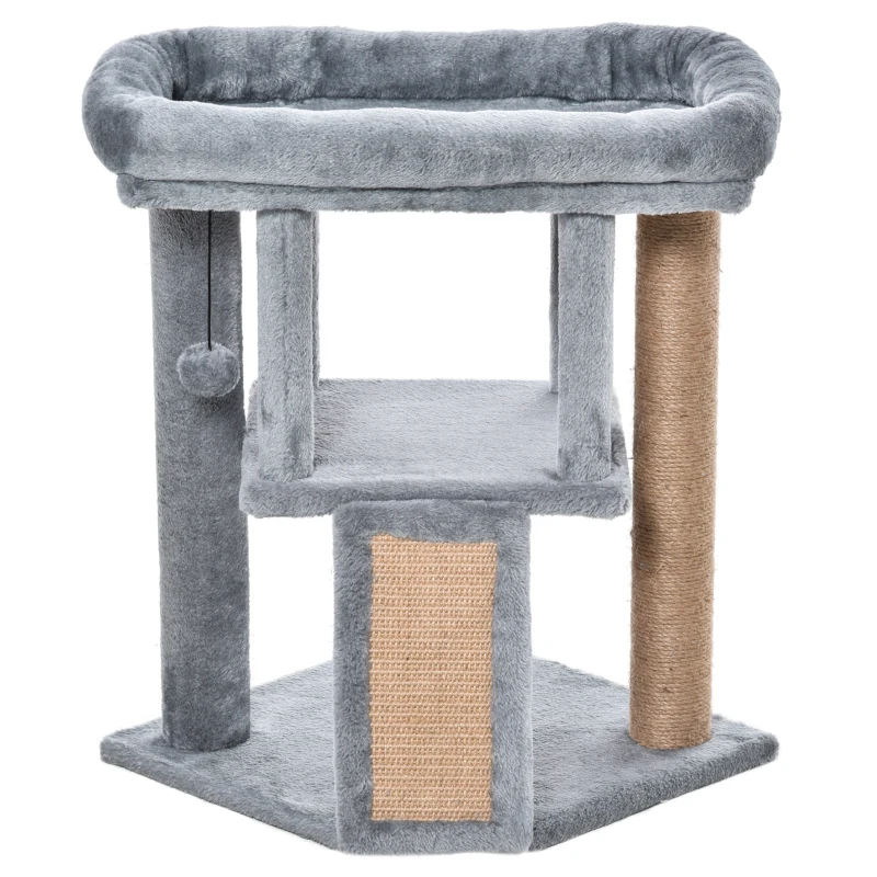 PawHut Дърво за котки 57 см Малко дърво за котки с котешка пещера, платформа за почивка, стълб за драскане с дъска за драскане, топка за игра, мебели за котки до 5 кг светло сиво