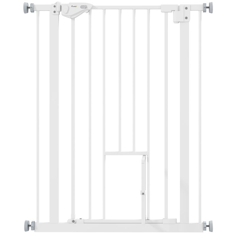 PawHut  преграда с вратичка, Не е необходимо пробиване, Регулируема ширина 74-80 см, Отваряне с една ръка, Метална, Бяла