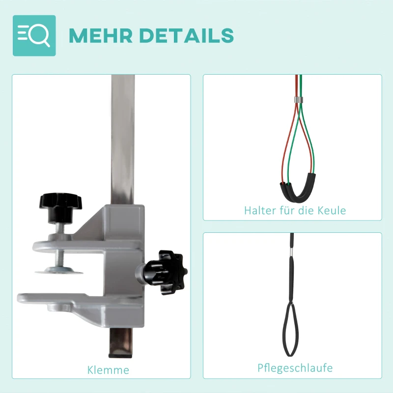 • Лесен монтаж: Тази стойка за груминг със скоби може лесно да се закрепи и отстрани без инструменти. Подходяща е както за груминг на домашни любимци, така и за обща употреба.