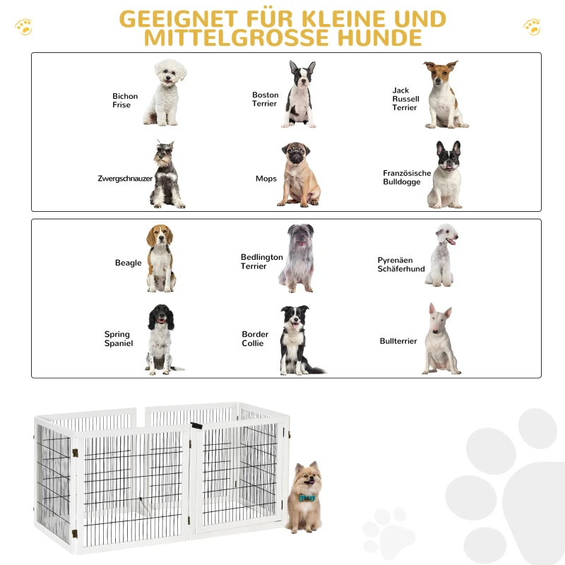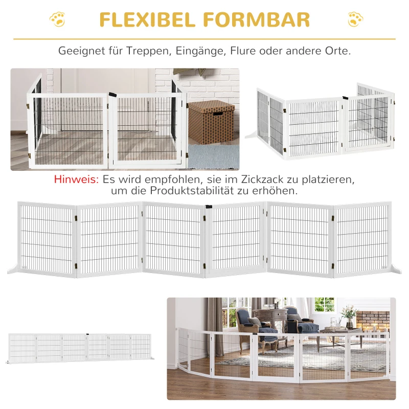 Сгъваема преграда за кучета PawHut, 432 x 36 x 70 см, борова дървесина, бяла