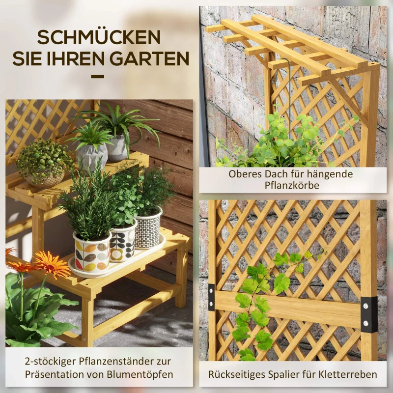 Стойка за растения Outsunny, 2 нива, с решетка и покрив, ела