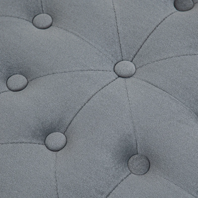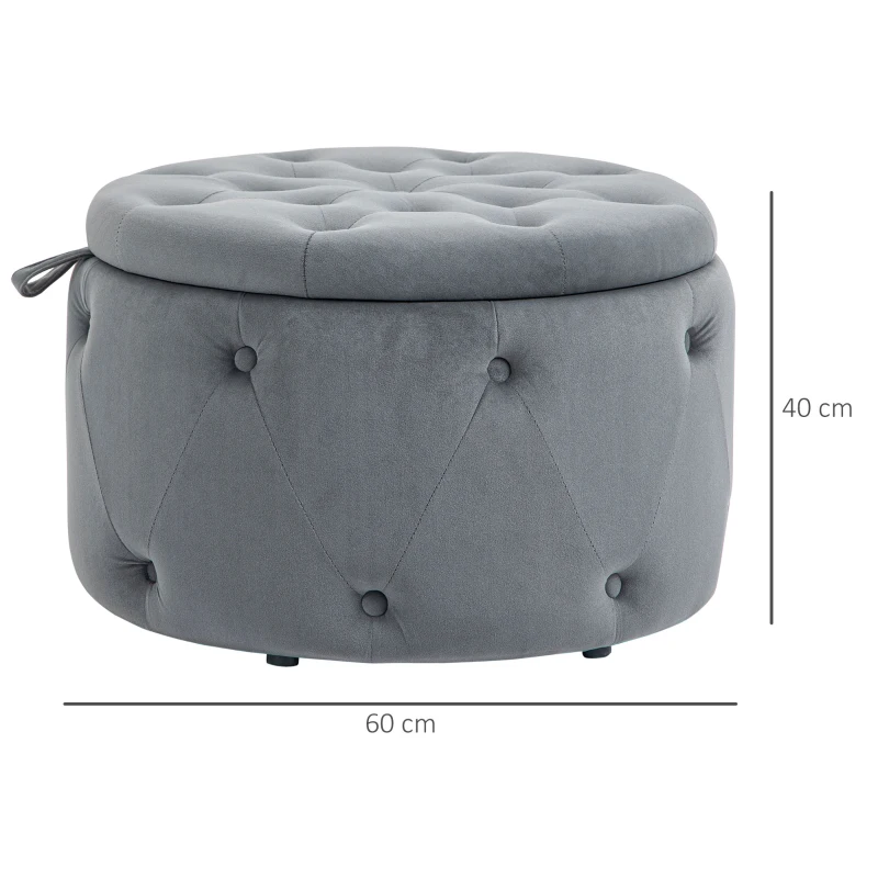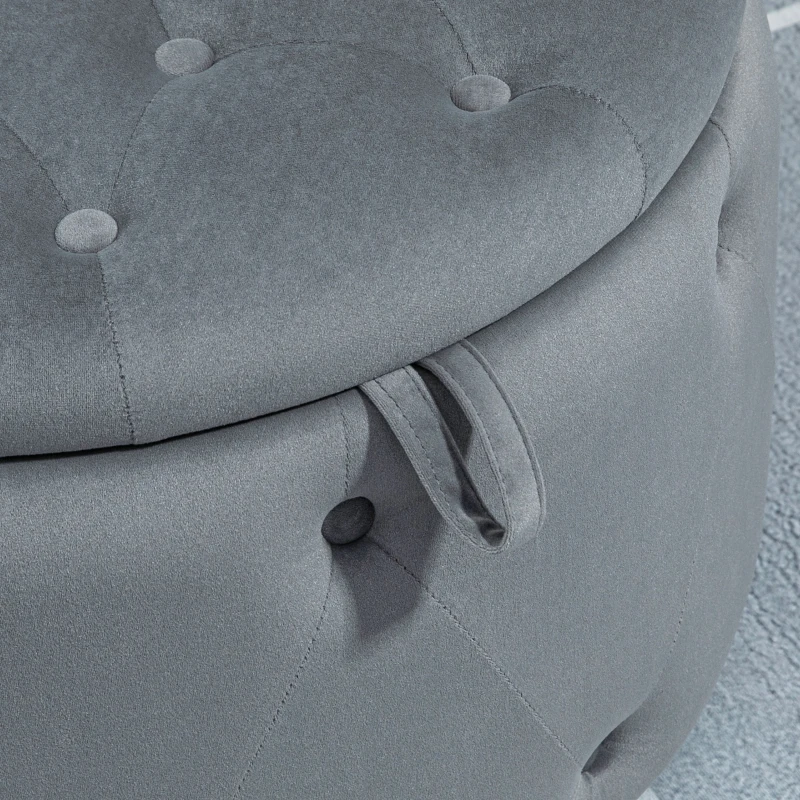 Табуретка HOMCOM, кръгла, с отделение за съхранение, капитониран дизайн с копчета, калъф с кадифен вид, сива, 60 x 60 x 40 см