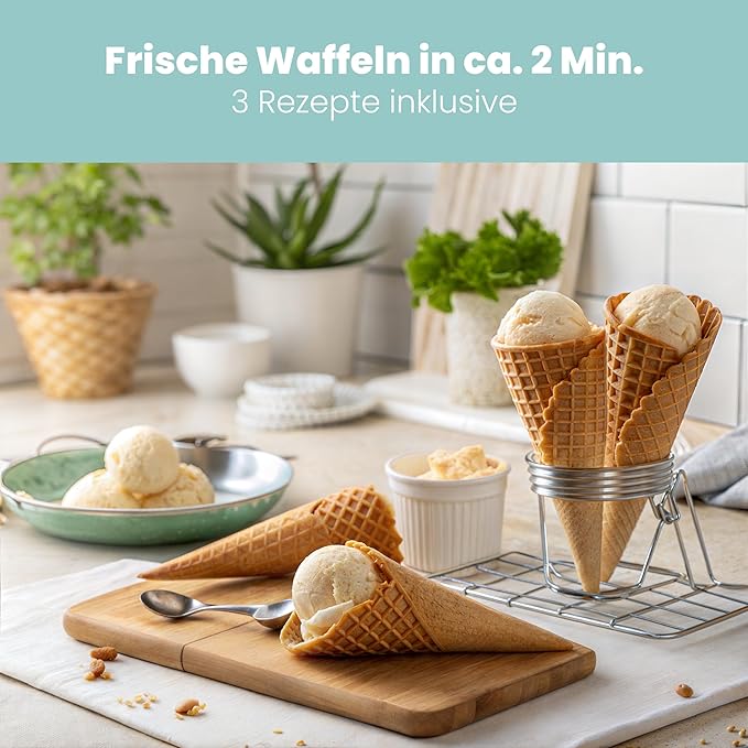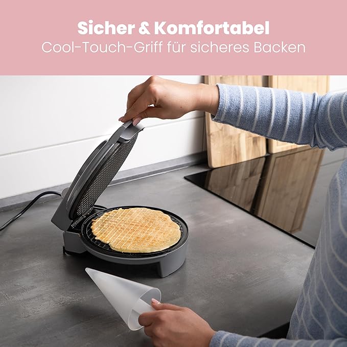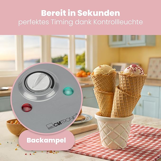 - Благодарение на незалепващата вложка, уредът за приготвяне на сладолед във фунийка обещава лесно почистване. Благодарение на термоустойчивия корпус, гофретникът с рог е лесен за употреба.