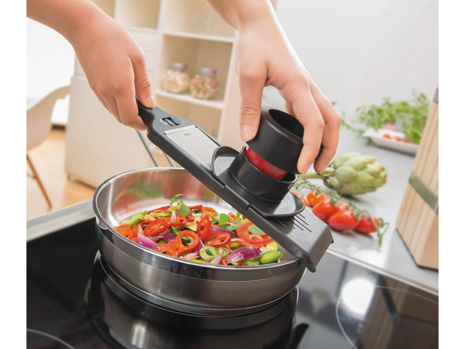 Смандолината Gefu Violi ще можете да нарежете всичко, което ви хрумне. Това е практична, компактна и много лесна за употреба кухненска мандолина, която заема малко място в чекмеджето и кухнята и решава основните ви ежедневни нужди от рязане.