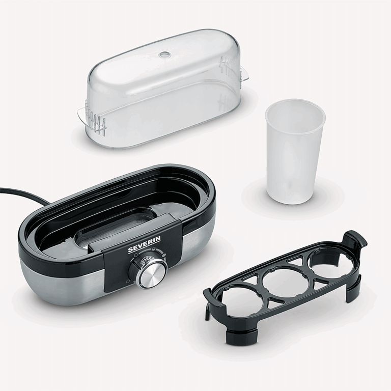 Детайли – Варител за яйца SEVERIN за 3 яйца, регулируема твърдост с електронно следене на времето за готвене, със звуков сигнал, мерителна чаша с пробиване на яйца, арт. EK 3163