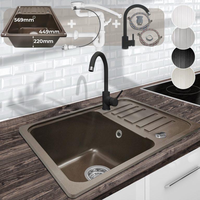 Aquamarin Гранитна кухненска мивка с комплект за оттичане
